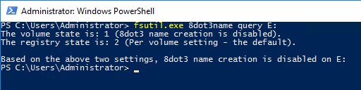 CODEfsutil.exe 8dot3name query E:(replace E with the volume letter for that server)
