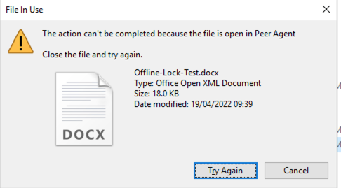 If a file was opened on Server A, it is locked on Server B (C, D, E,...). If Server B then loses connection to the broker, the file on Server B will remained locked since it has not received a release command yet. The file will remain locked until either the connection is re-established or the Peer Agent Service is restarted on that server.