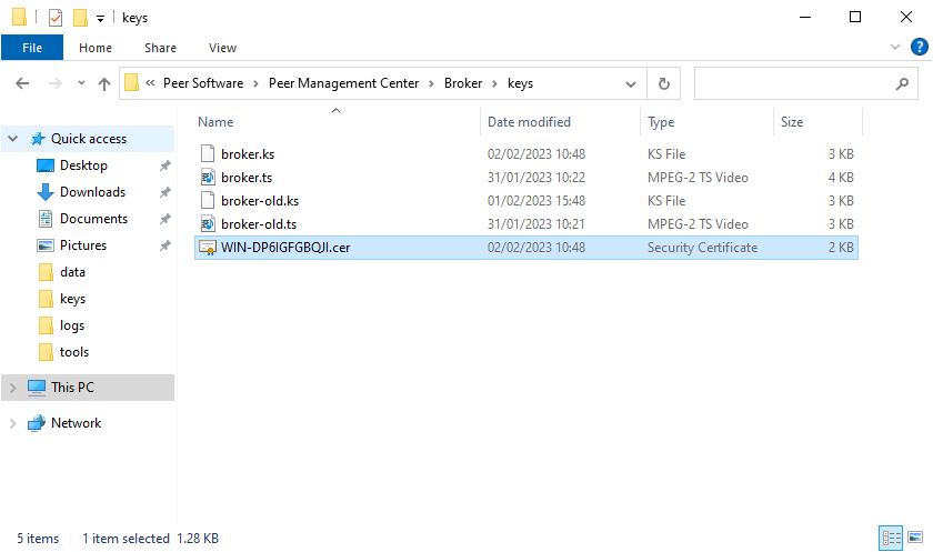 - Copy the generated certificate to the desired connecting machine (Agent or secondary brokers).