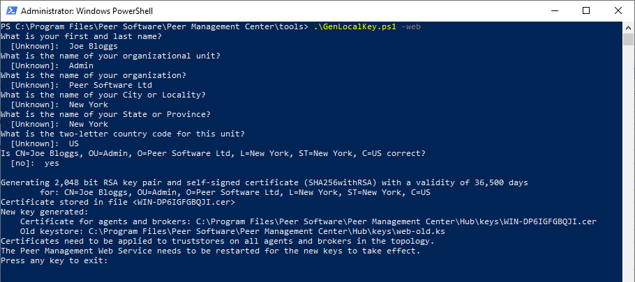 - Run the script GenLocalKey.ps1 passing the argument -web and follow the prompts displayed.
