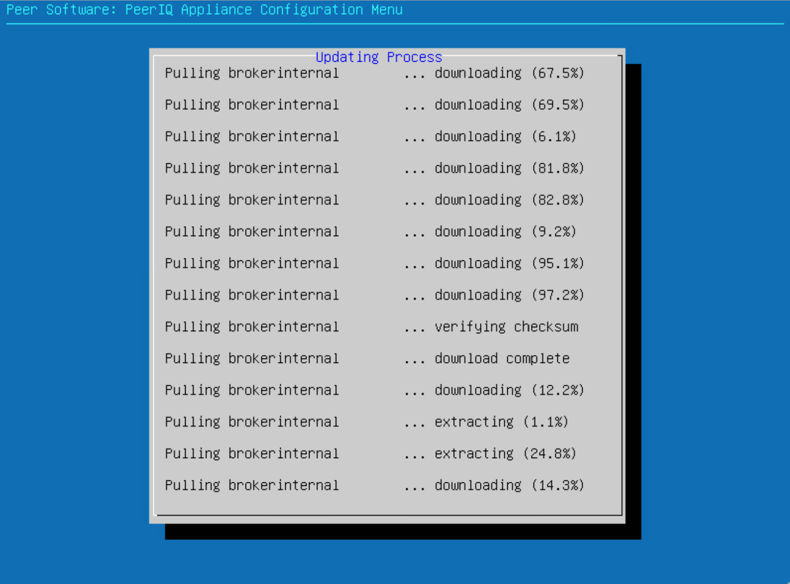 PeerIQ is built on a container-based software stack, deployed as a virtual appliance. Updating the PeerIQ software stack involves updating the numerous containers within the virtual appliance.