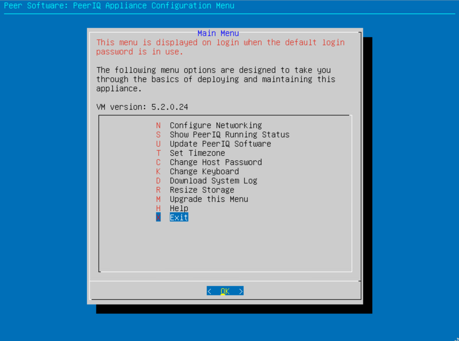 If you are logging into the appliance via SSH or the console for the first time, the menu will automatically load after log in.